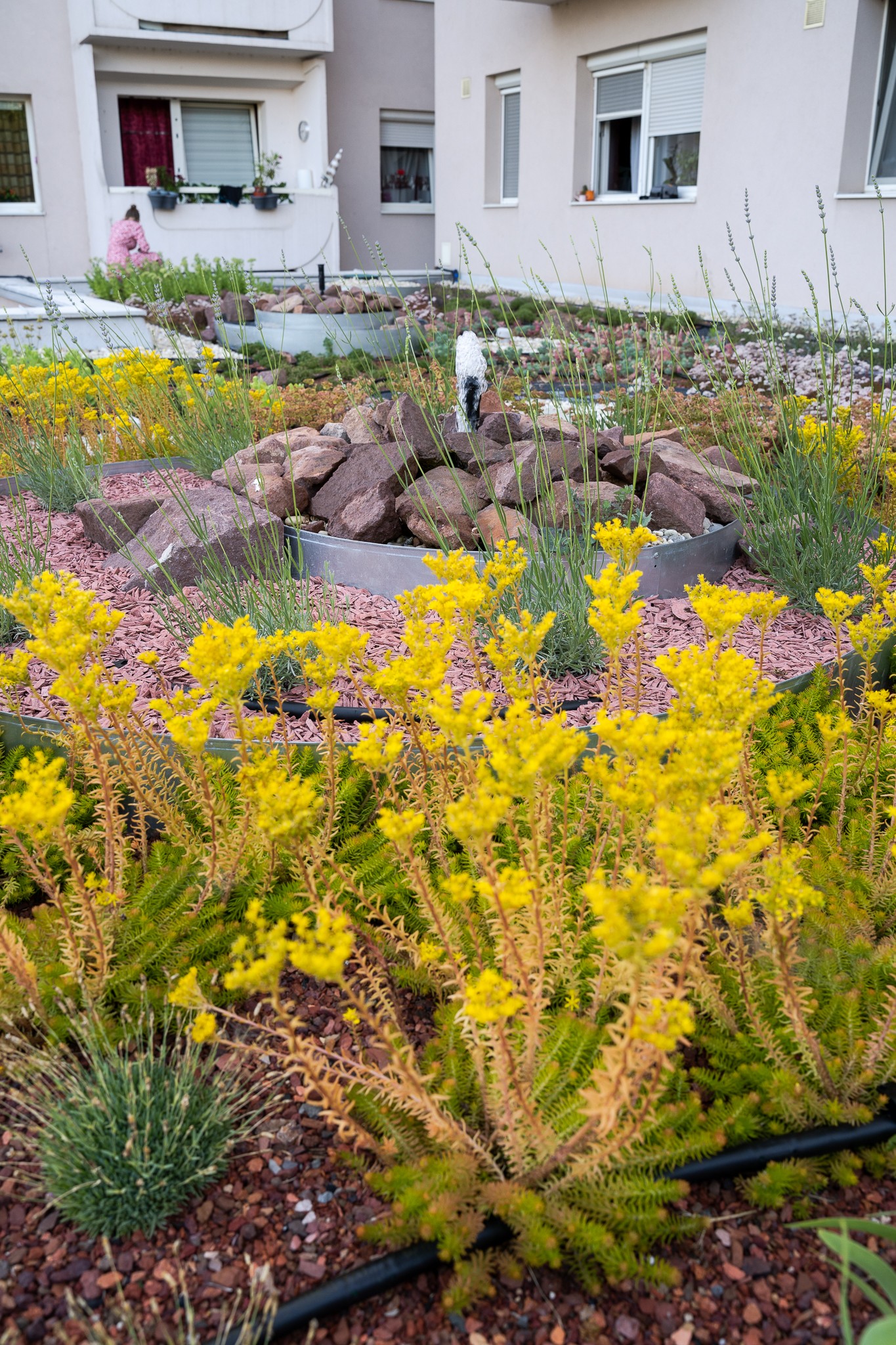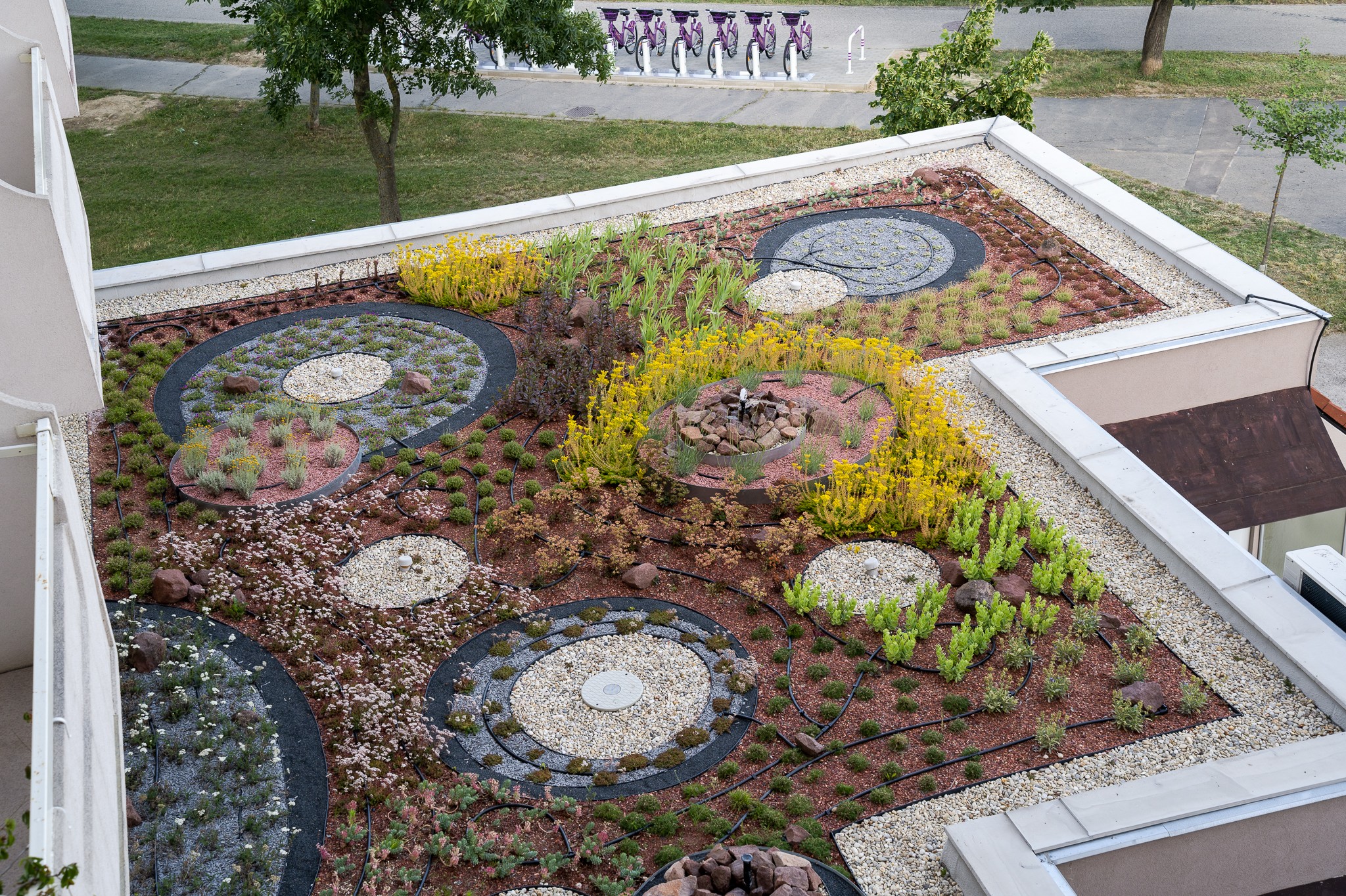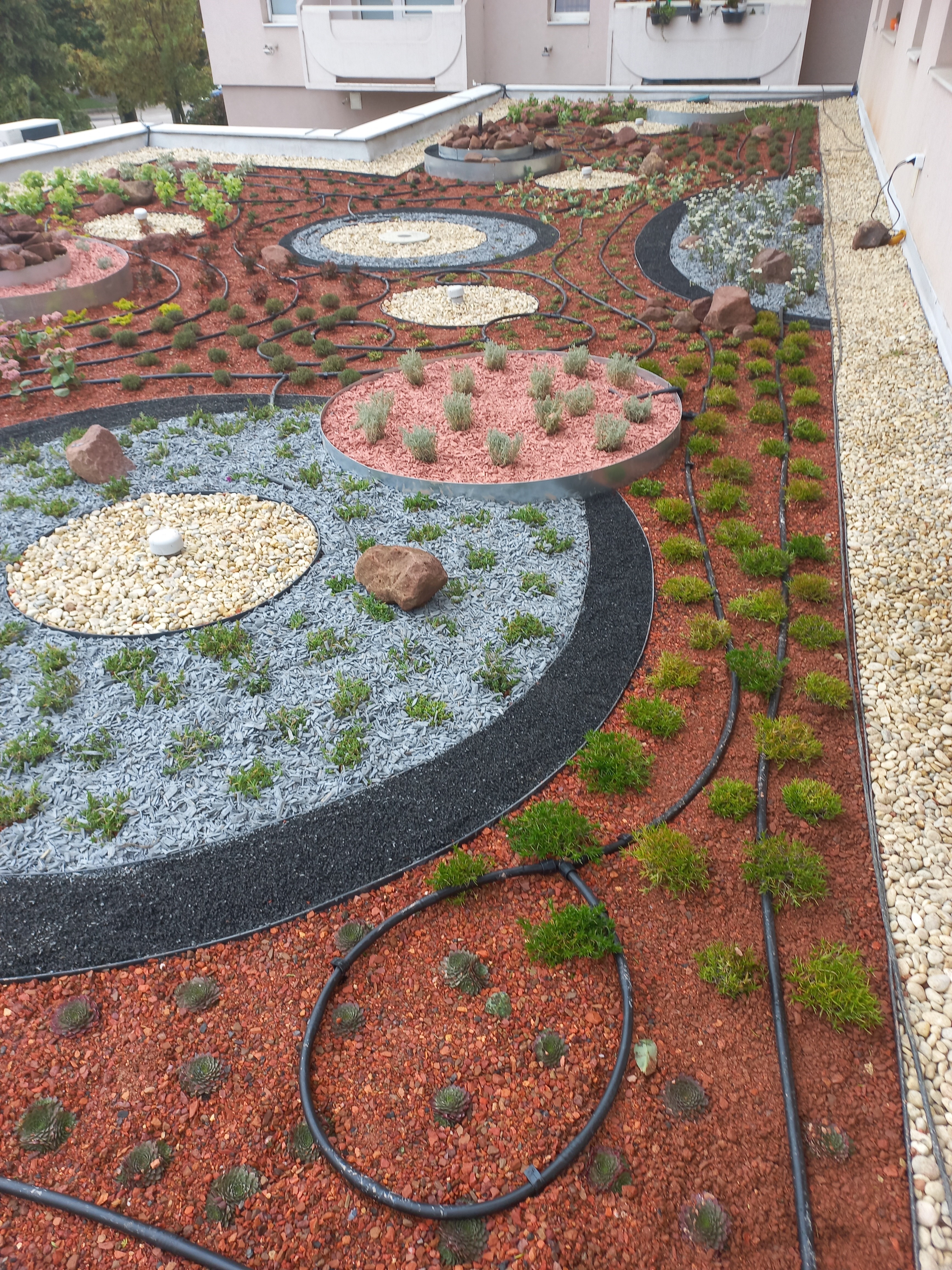 Csobogók egy társasházi zöldtetőn