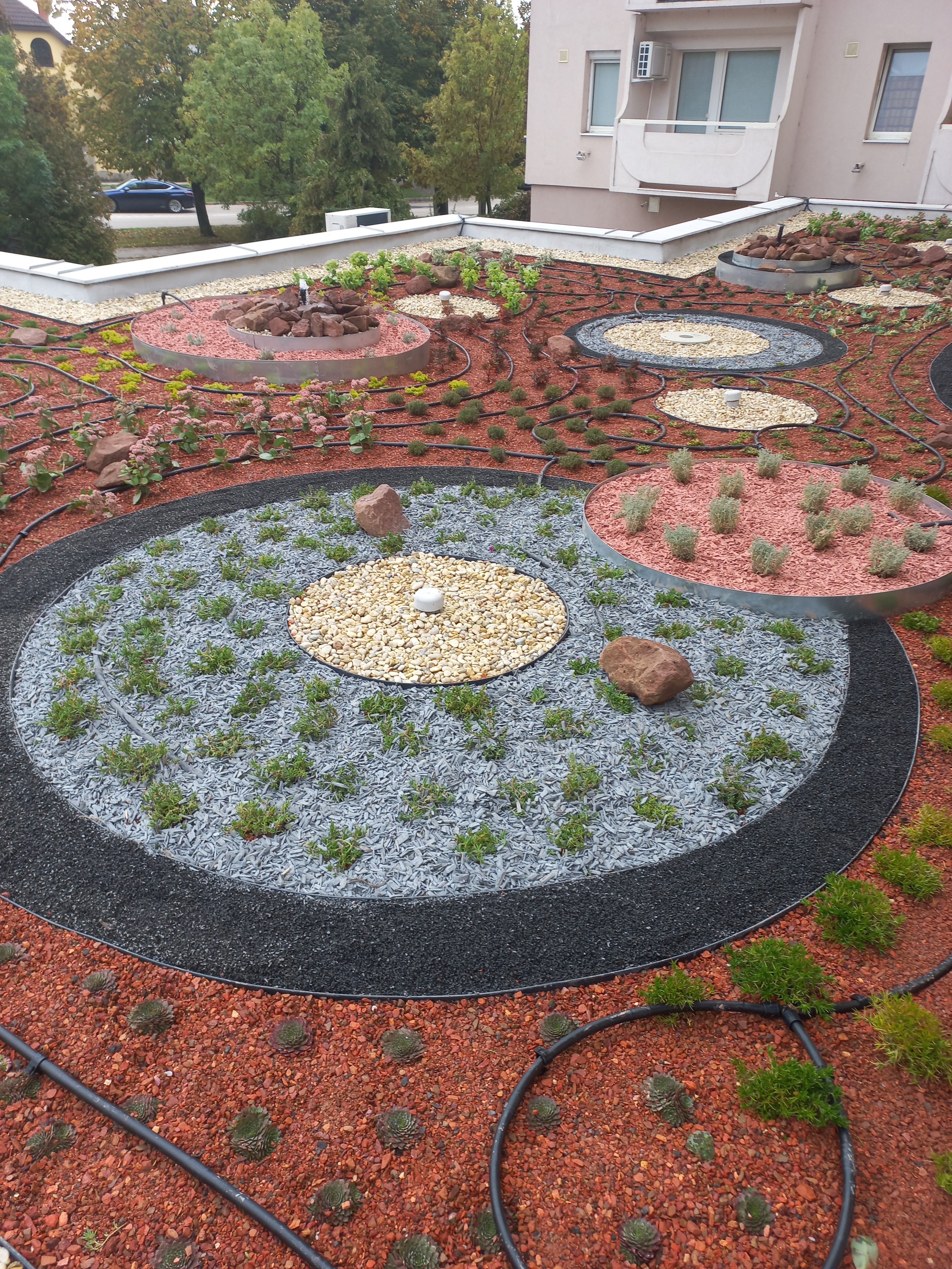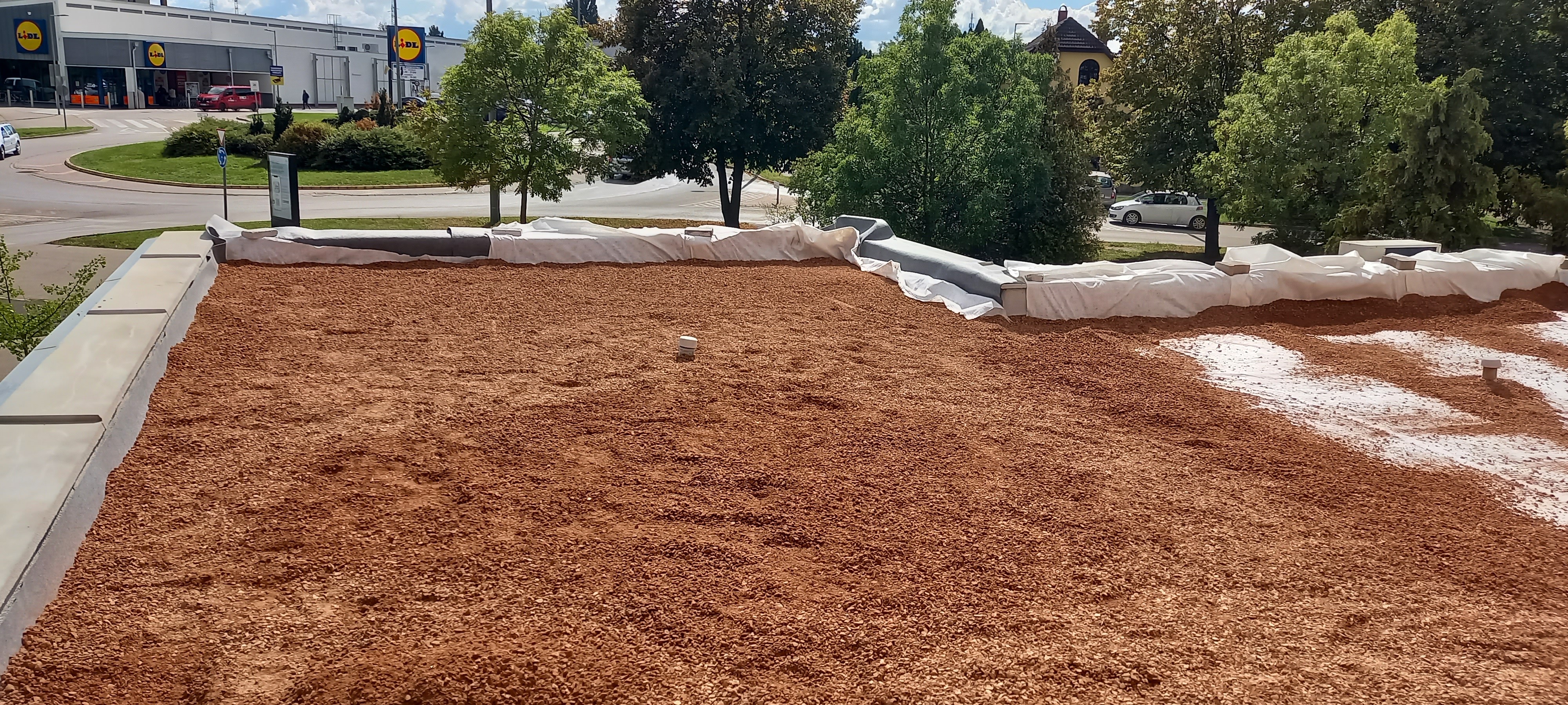 Legutóbbi munkánkra évekkel ezelőtt érkezett a felkérés, hogy a zöld szemléletű társasházban működő könyvtár tetejére építsünk egy intenzív zöldtetőt.