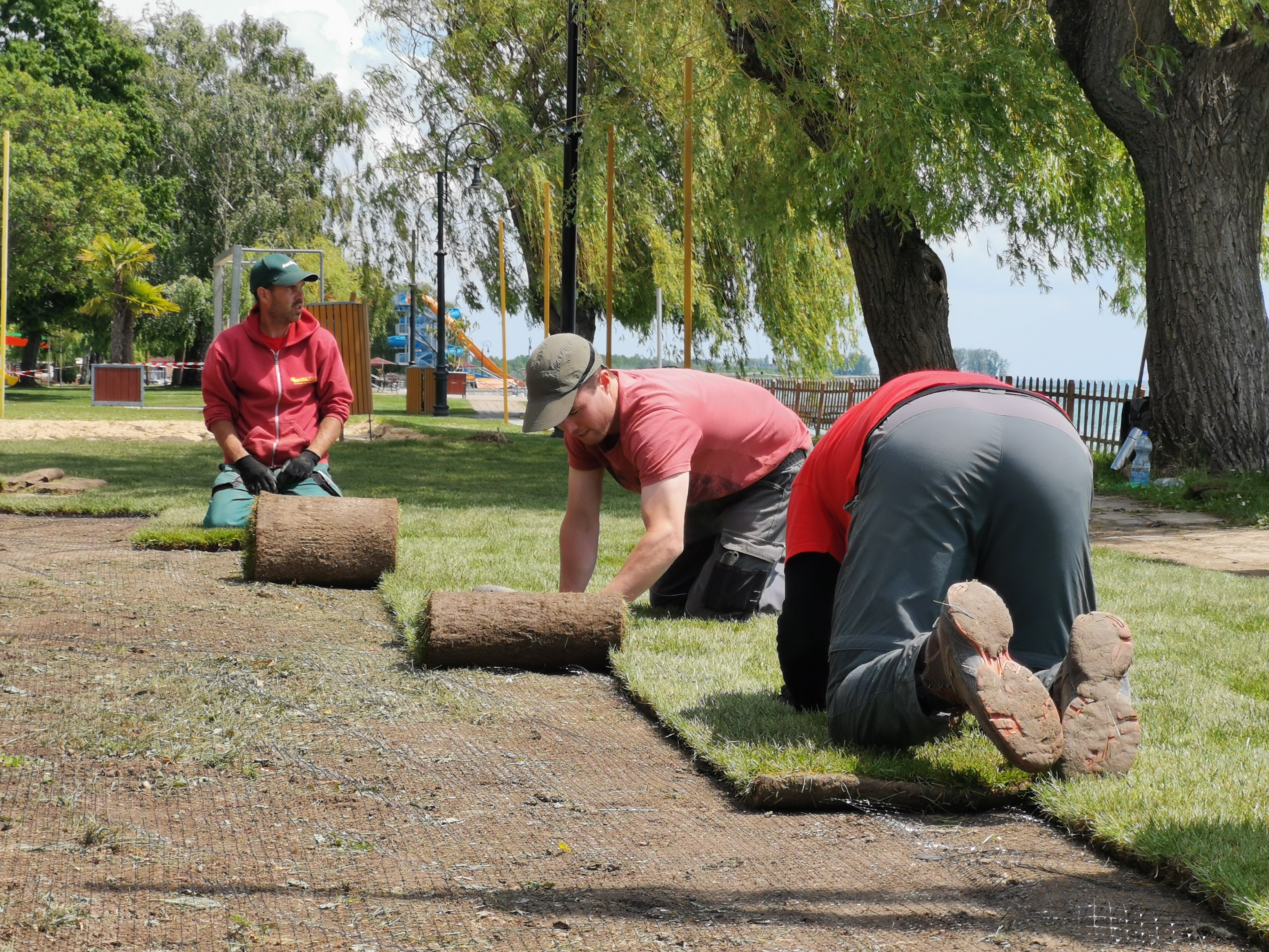 A szennyvízátemelőtelep kerítése mentén két métert meghaladó takaró funkciójú örökzöld, oszlopos tujákból álló sövényt telepítettünk. A csopaki strand így idén még több pihenni, felfrissülni vágyót képes fogadni, akiket új, színes évelőkkel teli virágágyások, rendezett zöld felület vár.