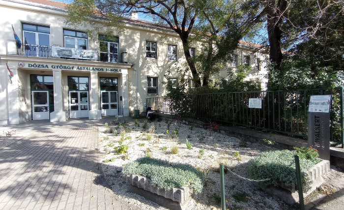 Az iskola megkeresésére, Szmetán Ferencné iskolatitkár vezetésével, a zöldfelületek fejlesztésére cserjékkel és virágzó évelőkkel gazdagított területet hoztunk létre. A 45 m²-es ágyás egyedi jellege, hogy az ökológiai szempontokat figyelembe véve alakítottuk ki. Ez a megoldás olyan növényfajták vegyes kiültetését jelenti, amelyek alkalmazkodnak a helyi környezeti adottságokhoz. Ezzel a megoldással az iskola költséghatékony, mégis esztétikus és környezetbarát zöldterületet nyert, melyhez nincs szükség öntözőrendszerre és kevés kabantartást igényel.