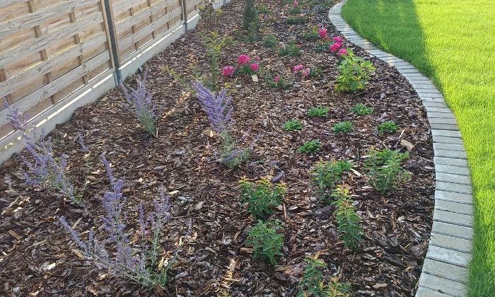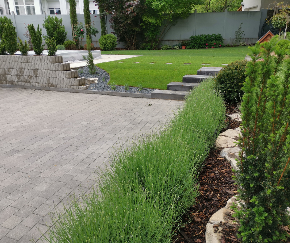 • Termék:automata öntözőrendszer, ágyásszegély elemek, cserjeültetés, évelő növények telepítése, fakéreg mulcs, vakondháló, gyepszőnyeg