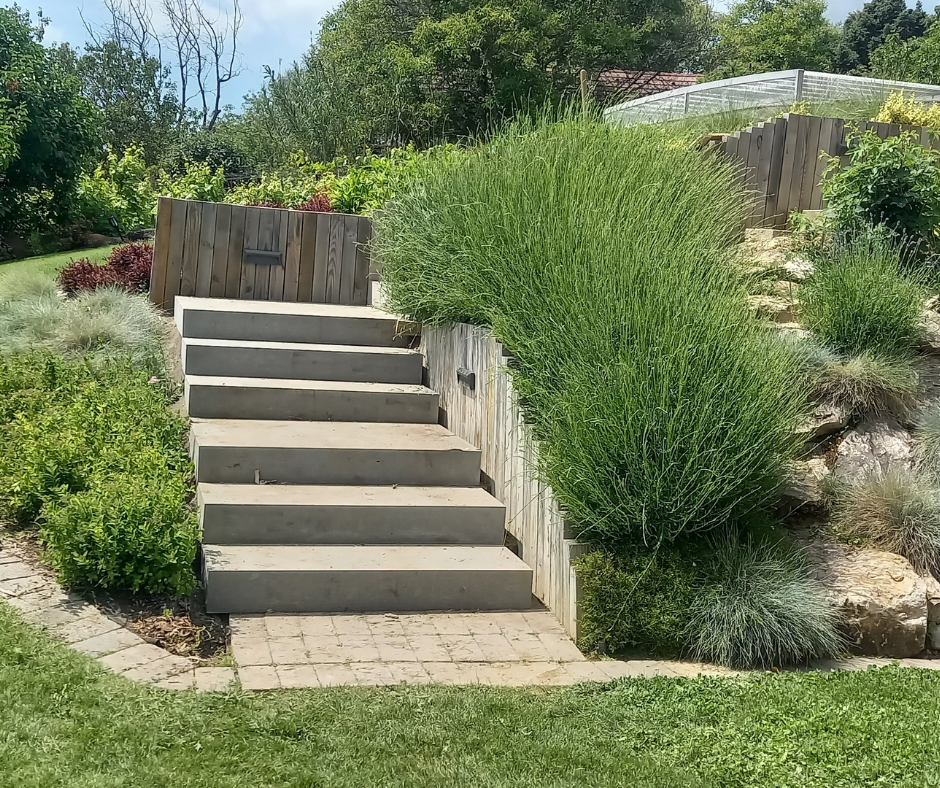 • Munka leírása:Tihanyban egy különleges adottságú telken valósítottunk meg átfogó kertépítési munkát.