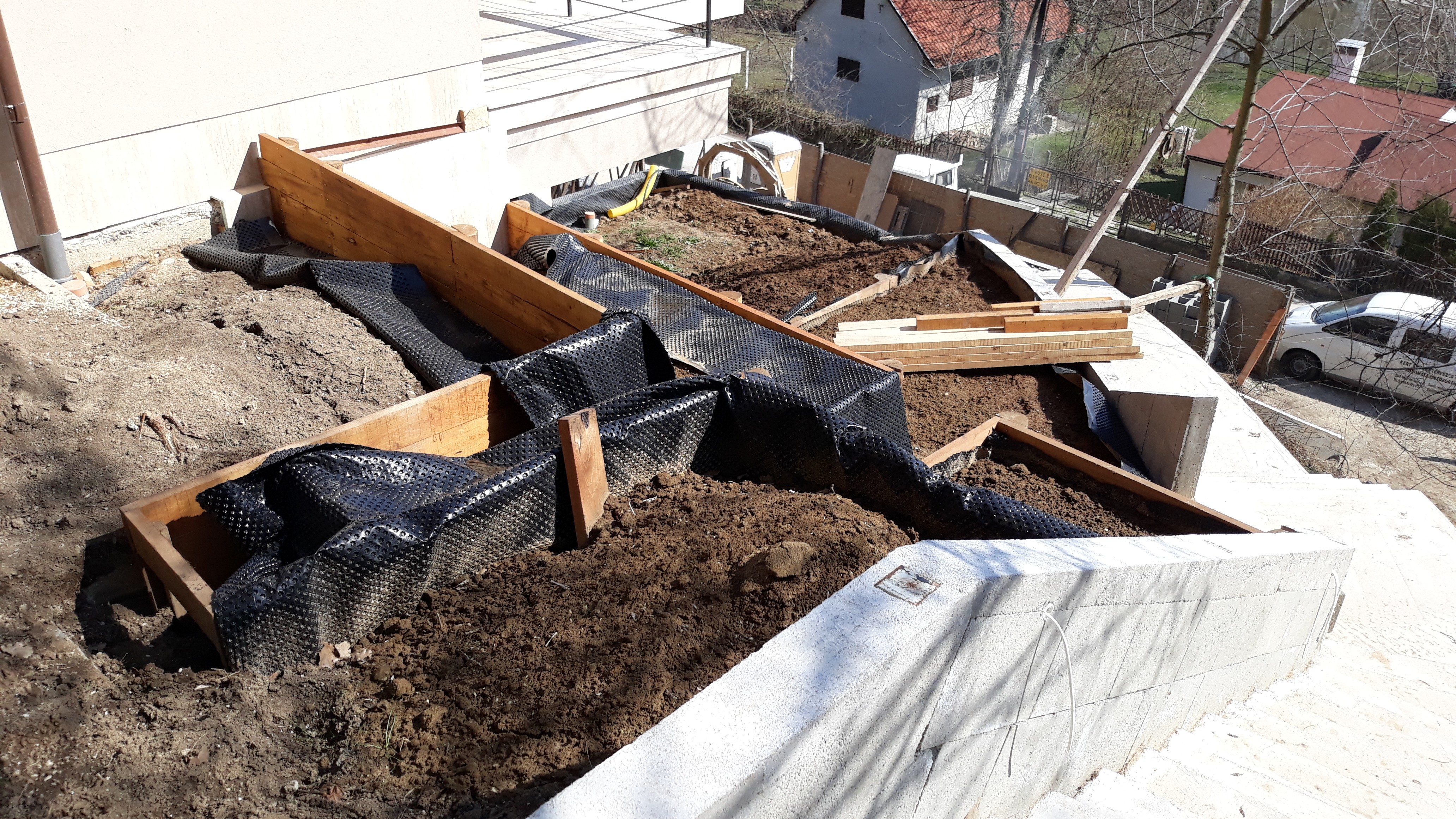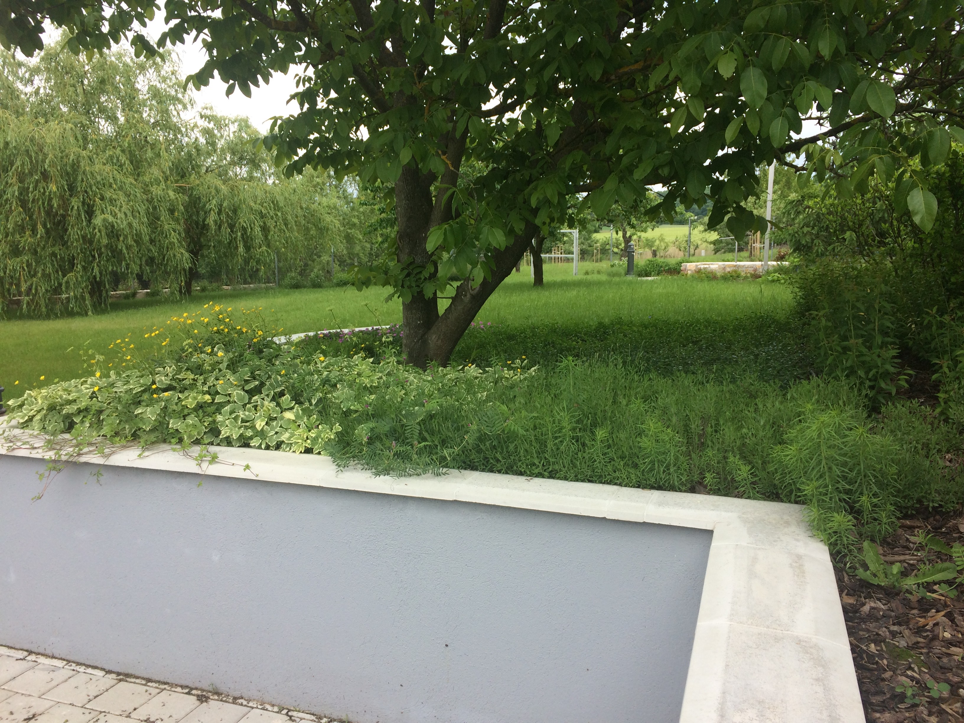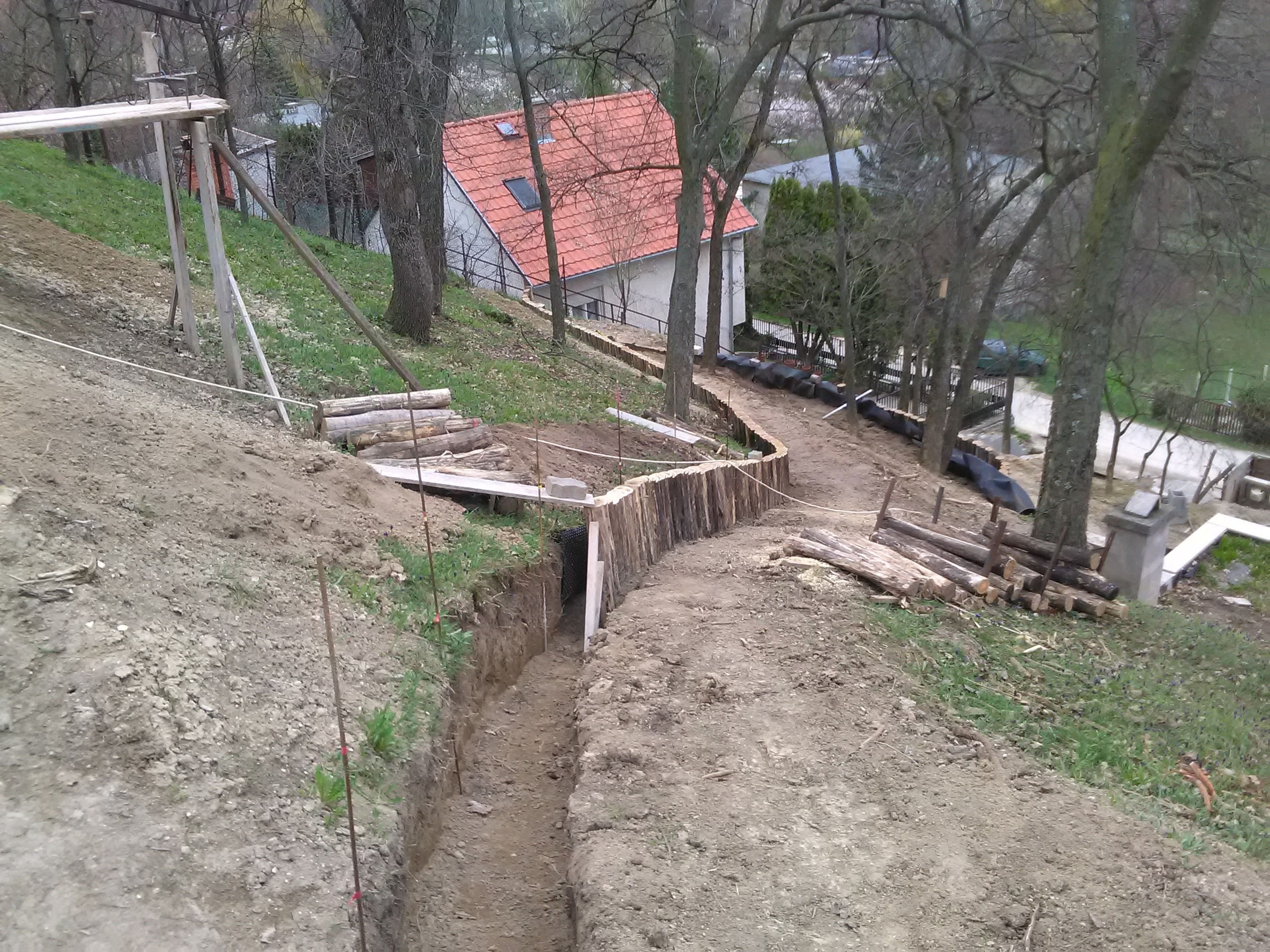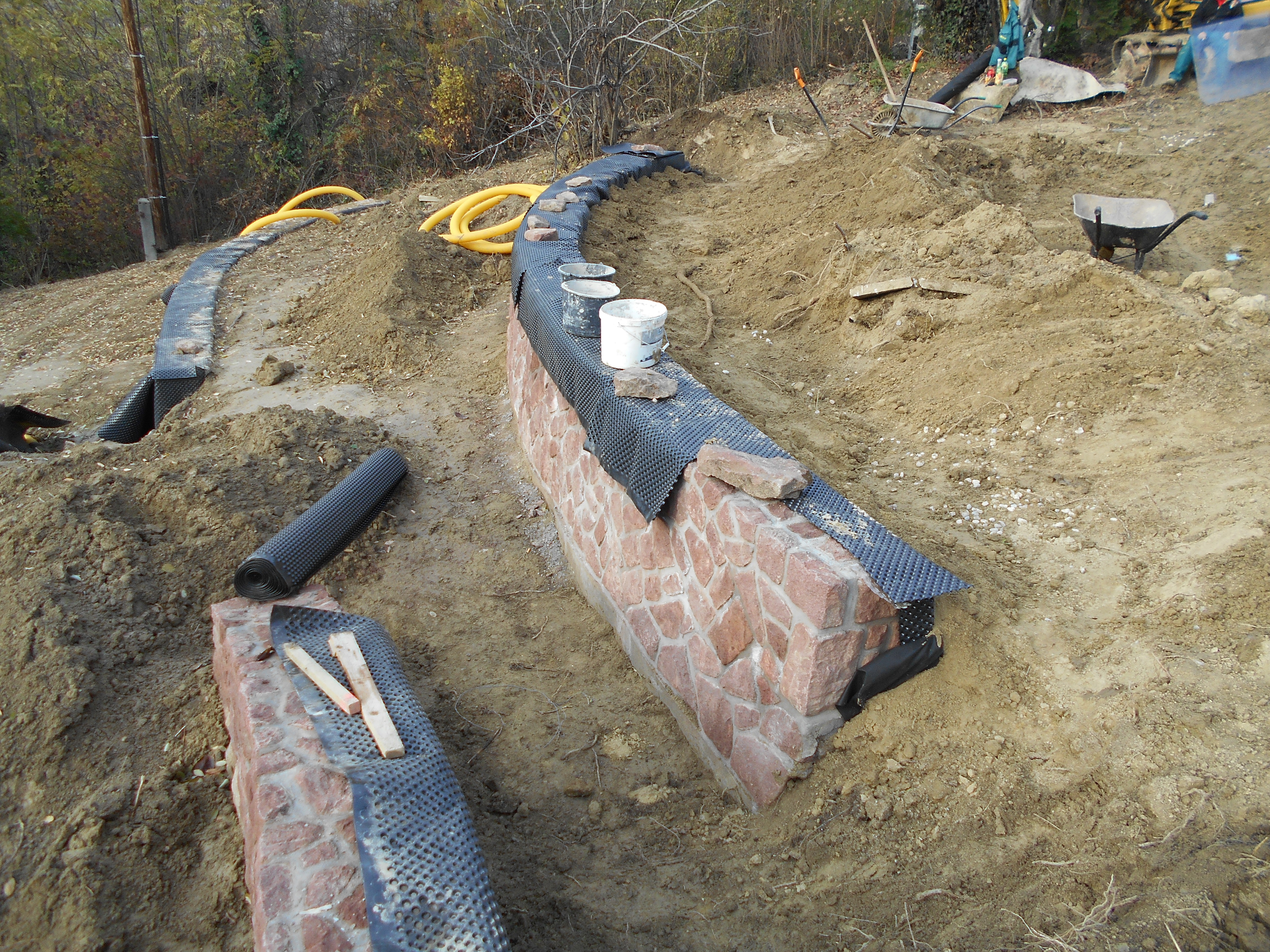 Nagyobb lejtésű területeknél, ahol a fentről érkező vizet lassítani akarjuk, meg akarjuk fogni, ott célszerű a támfal mögött kavicsos szivárgósávot kialakítani, melynek aljába egy dréncsövet helyezve, a felgyűlő vizet el is vezethetjük.