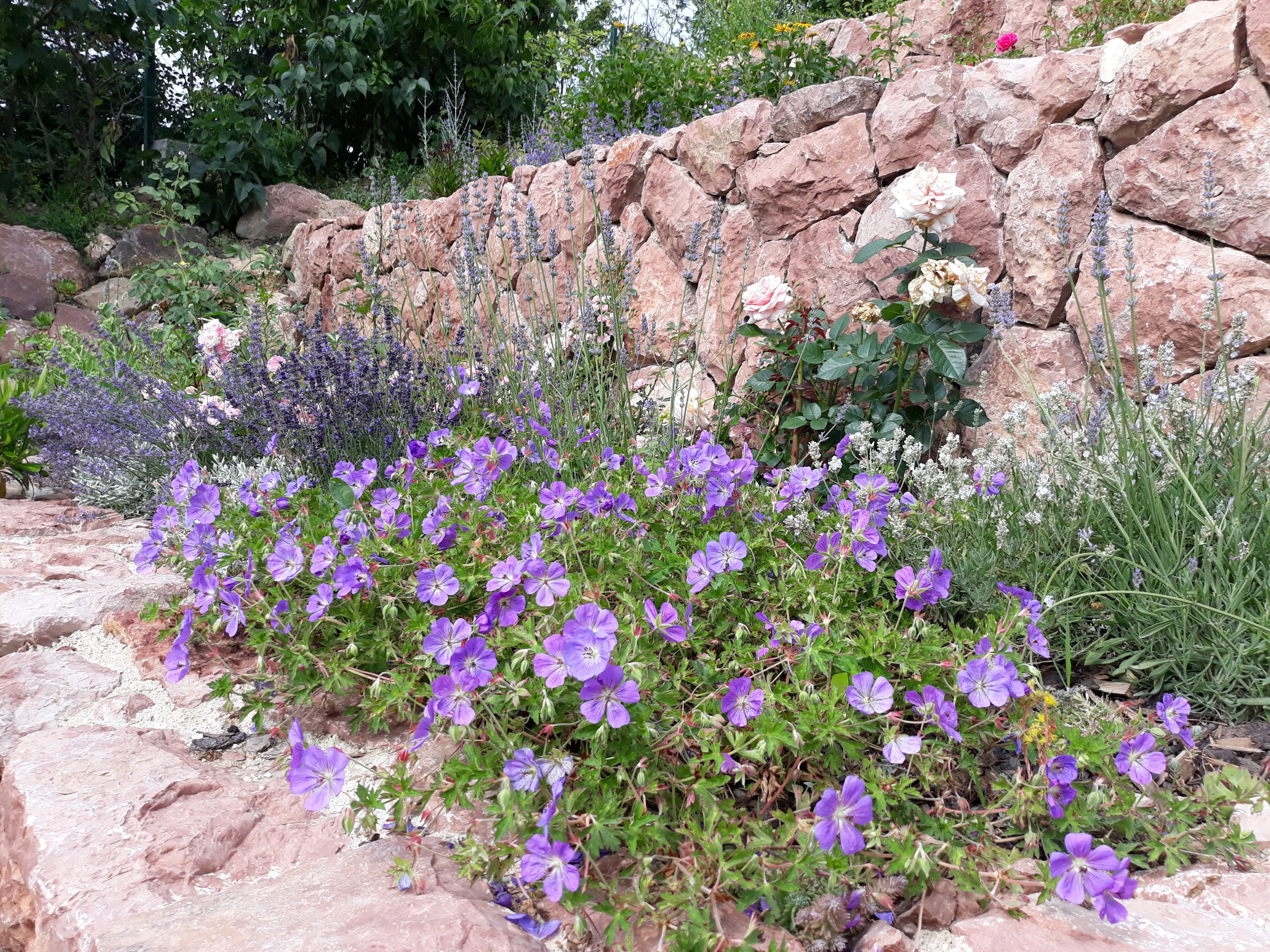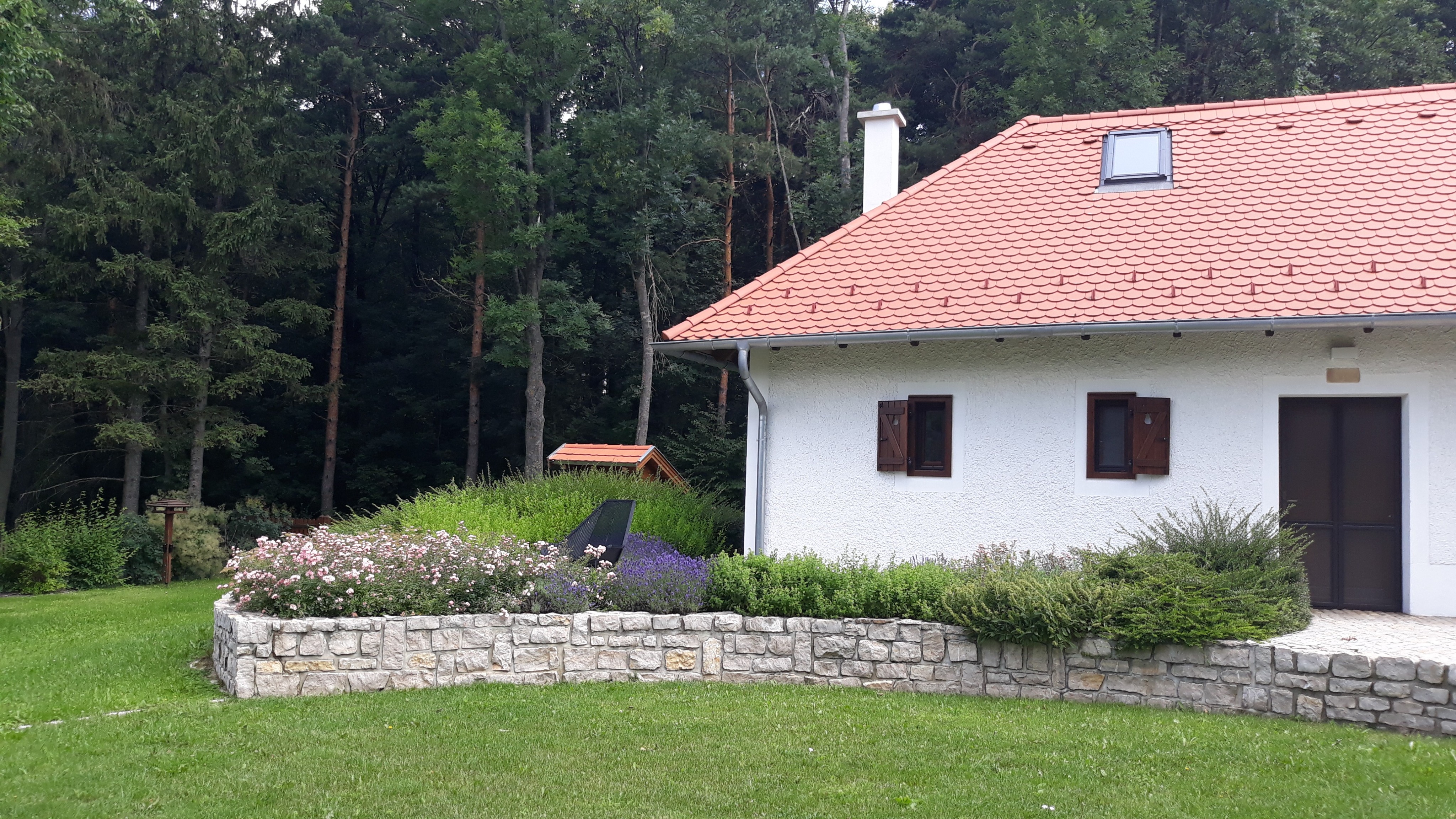 A támfalat készíthetjük kőből, ha a környéken jellemző a kő előfordulása, vagy ha a kert jellege ezt megkívánja. A kőtámfal épülhet szárazon rakott (azaz kötőanyag nélkül), vagy habarcsba ágyazott kövekből. A kövek rakásánál a természetben előforduló 'állapotot' utánozzuk. Csak jó minőségű, fagyálló köveket használjunk támfalak építésére, burkolására. A támfalak tetejét (különösen a tégla - és kőtámfalak esetében) célszerű fedkővel lezárni. A fedkő nem csak a látvány szempontjából fontos, hanem mert megvédi a támfalak felső síkját az átnedvesedéstől, a beszivárgó csapadékvíz átfagyásától. A fedkő készülhet a támfal saját anyagából vagy műkőből. A fedkő a támfal szélétől mindig nyúljon kijjebb, célszerű ún. vízorrot kialakítani, amely elvezeti a falsíktól a lecsorgó csapadékvizet.