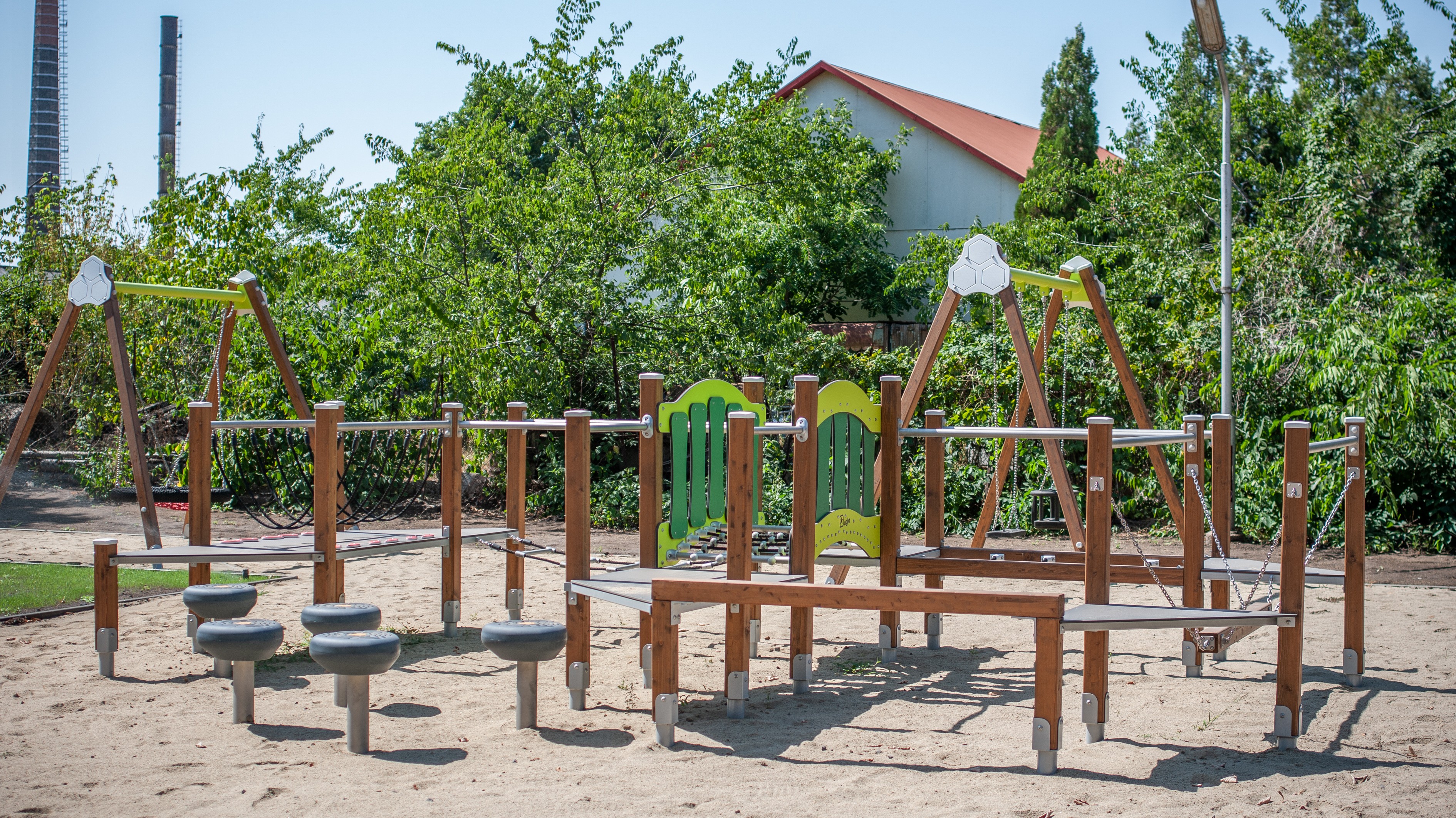 Együttműködésünk eredményeképpen az intézmény udvarán a következő játszótéri eszközöket vehették birtokba az ép és sajátos nevelési igényű autista gyermekek: