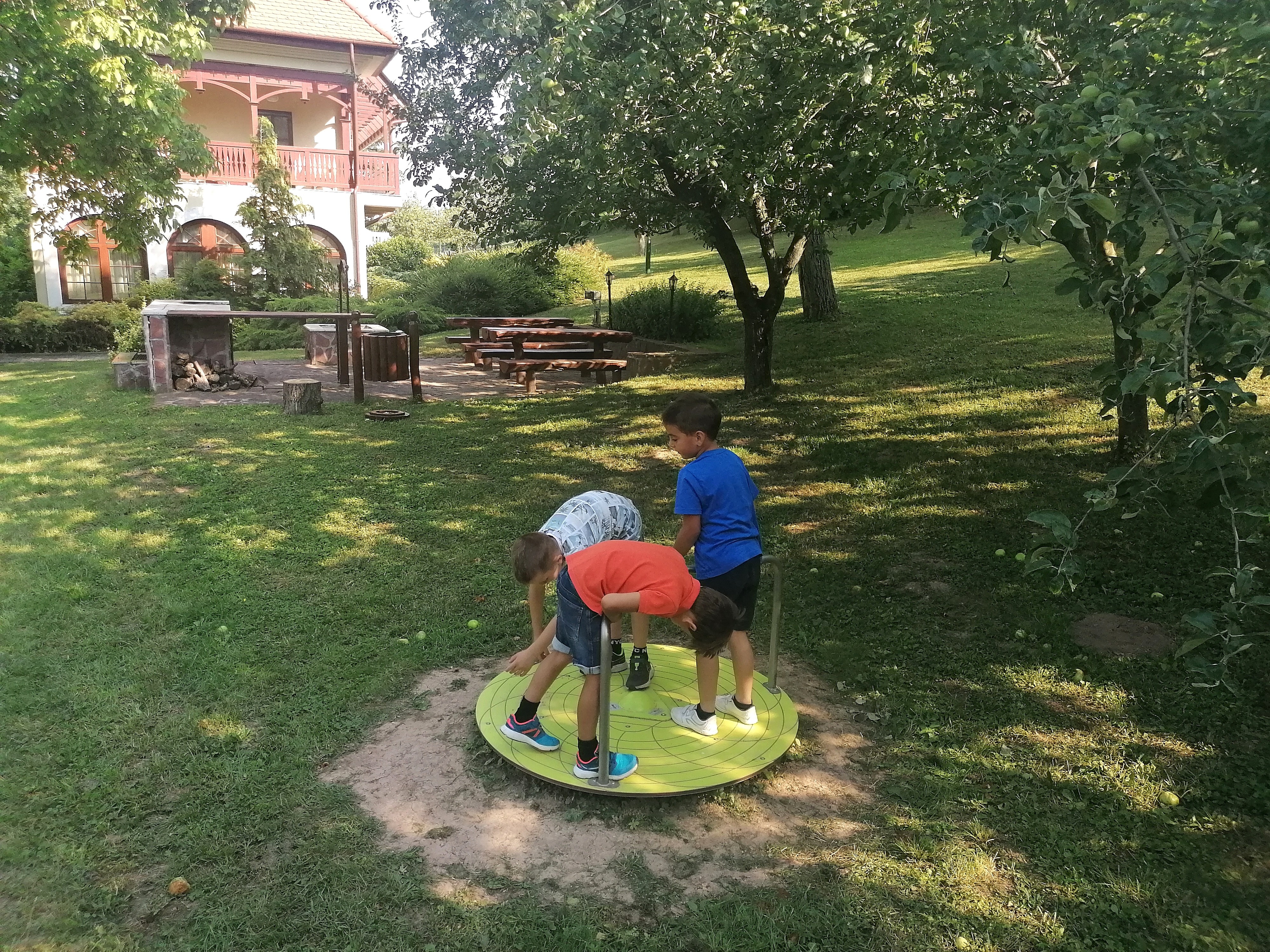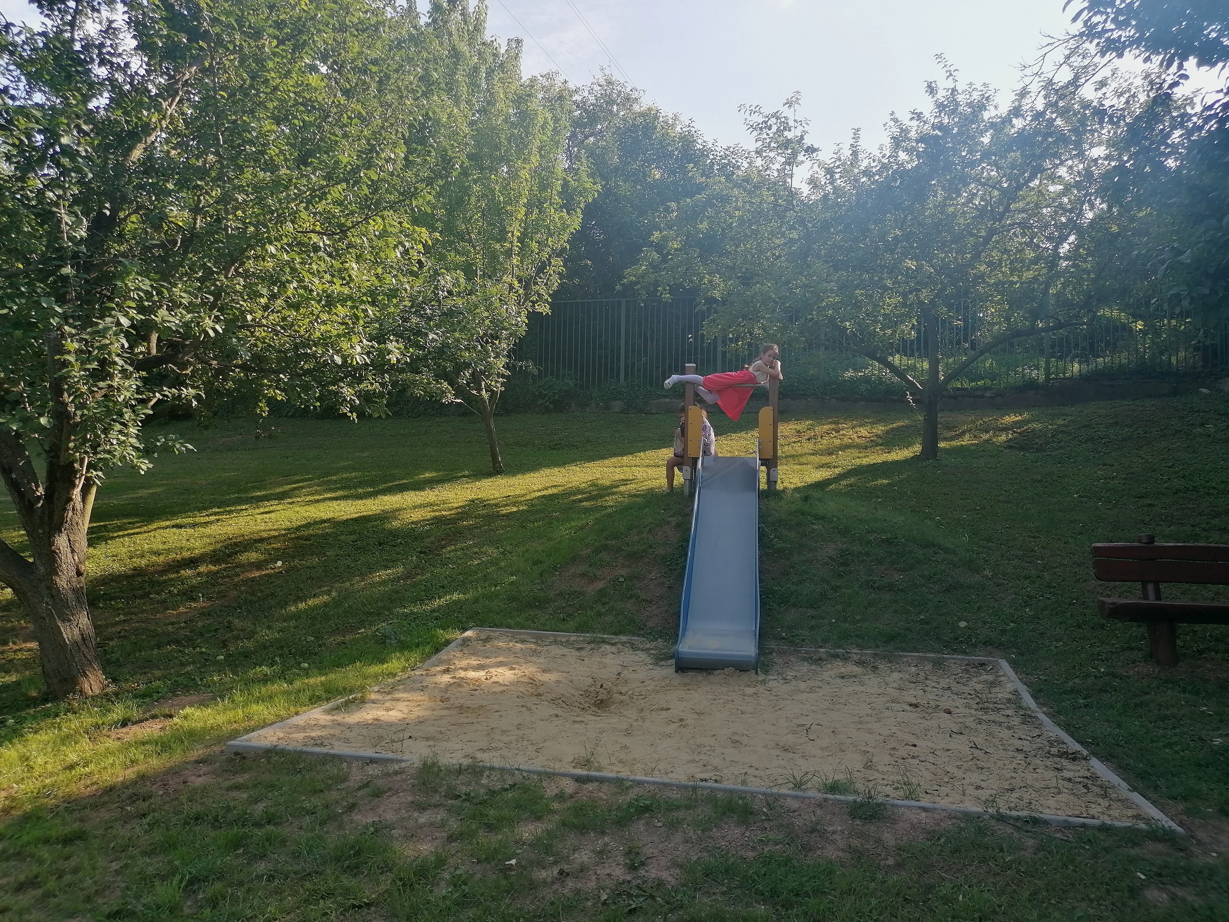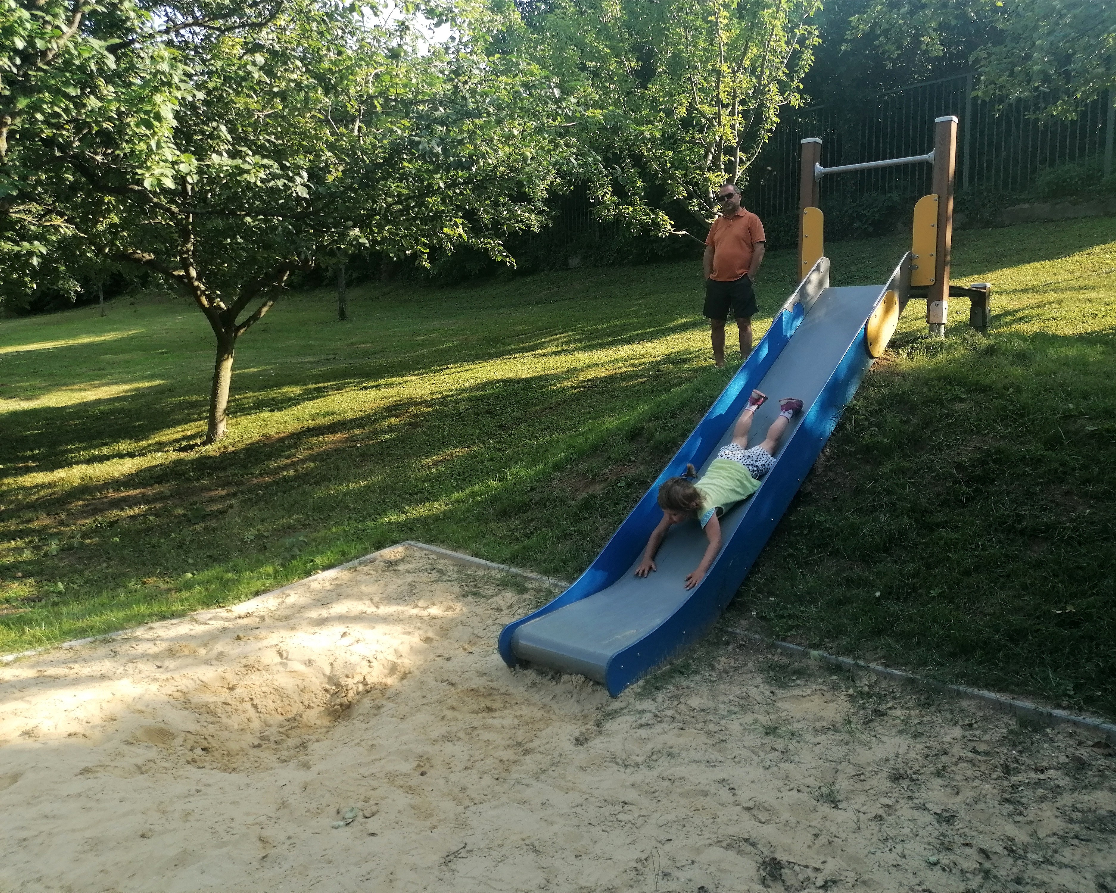Az igazgatóság területén egy szálláshelyet is üzemeltet a nemzeti park, ami mellé nem is olyan régen építettünk egy aranyos kis játszóteret. Kihasználva a terep adottságait a domboldalra egy rézsűcsúszdát telepítettünk. A csúszda mellett körforgó, kétszemélyes rugós tehén és egy kétállásos lengőhinta várja a gyerekeket és várt engem is… Nagyon kíváncsi voltam a végeredményre!