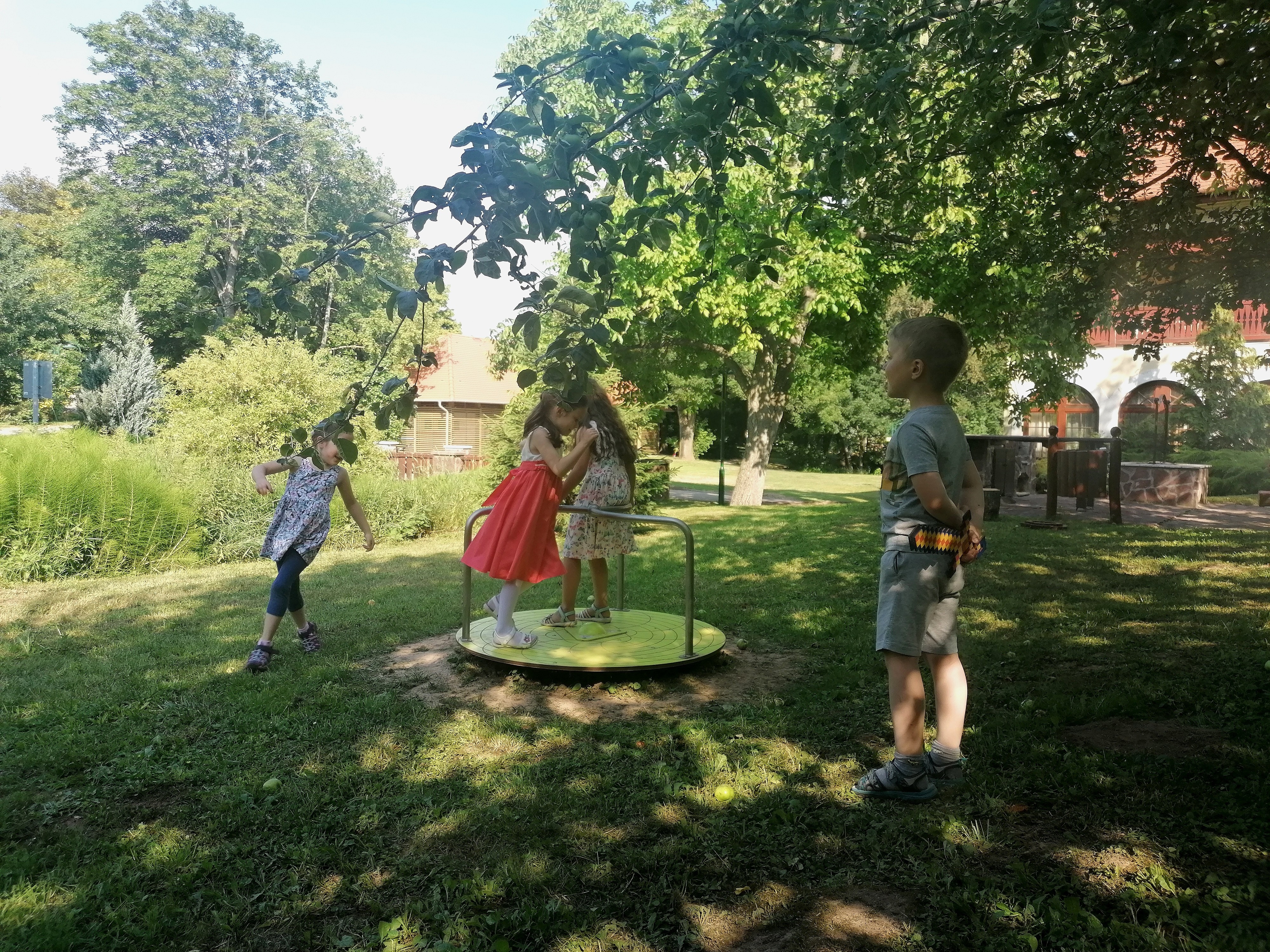 Ahogyan közeledtem a játszótér felé hangos gyerekzsivajra lettem figyelmes. Egy apukától tudtam meg, hogy a csopaki ovisok évzáró mulatságát tartják éppen, akik közül jópáran a játszótéren lógtak, nyúzták a játszóeszközöket.