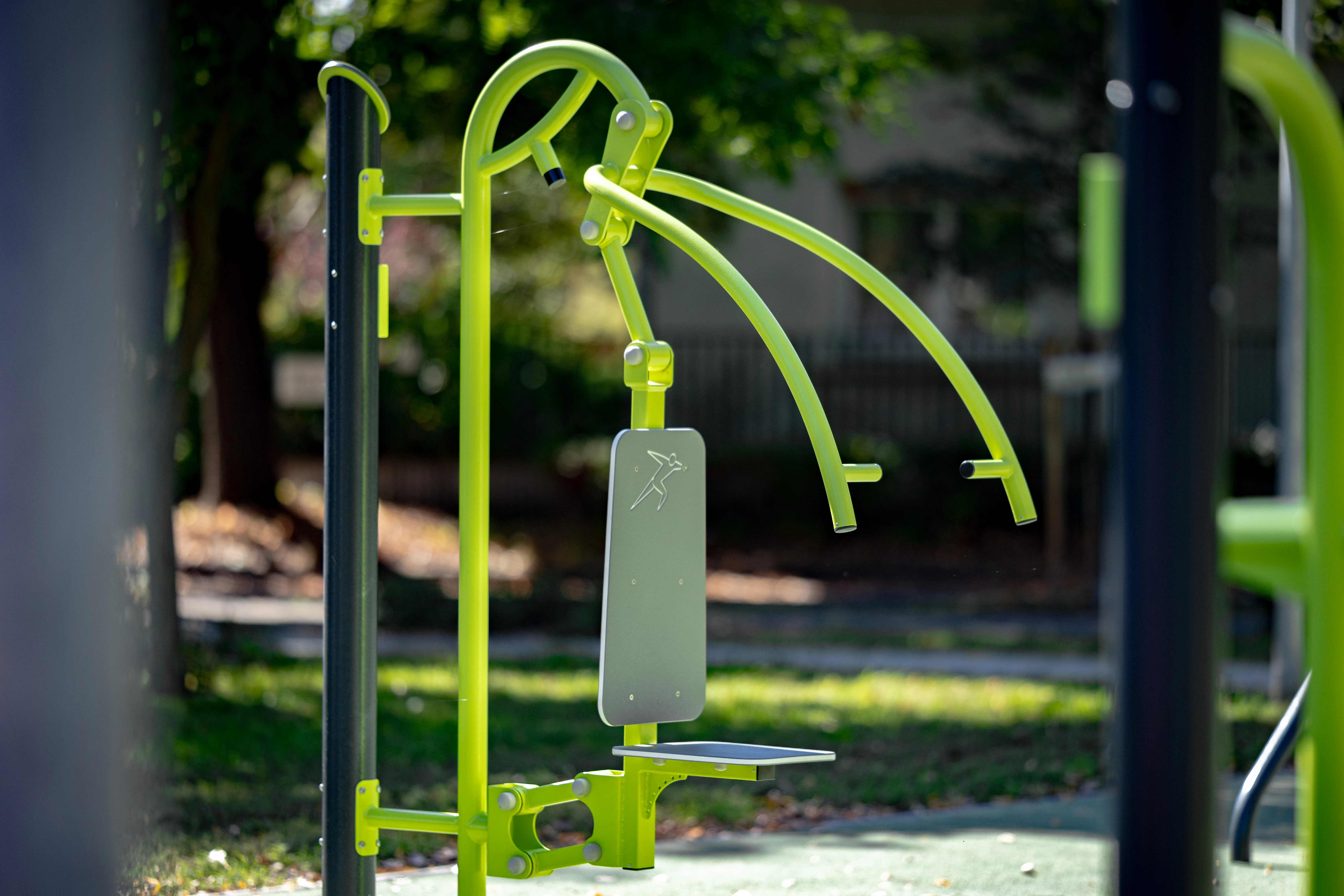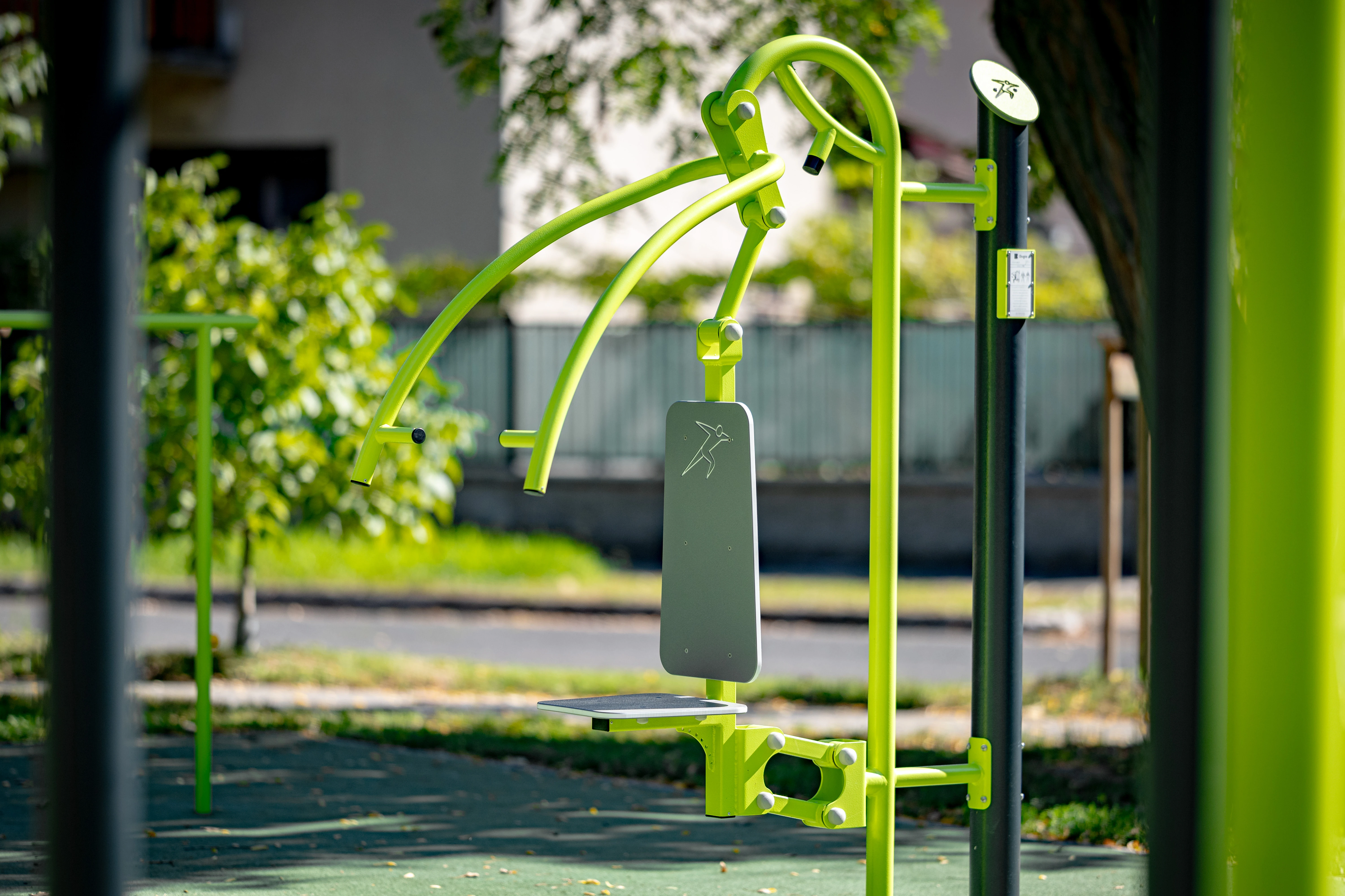 A Buglo eszközökre jellemző letisztult dizájn és modern formavilág kiegészíti a park természetközeli hangulatát – így az edzőtér nemcsak sportolási helyszín, hanem esztétikus, közösségi találkozóhely is lett.
