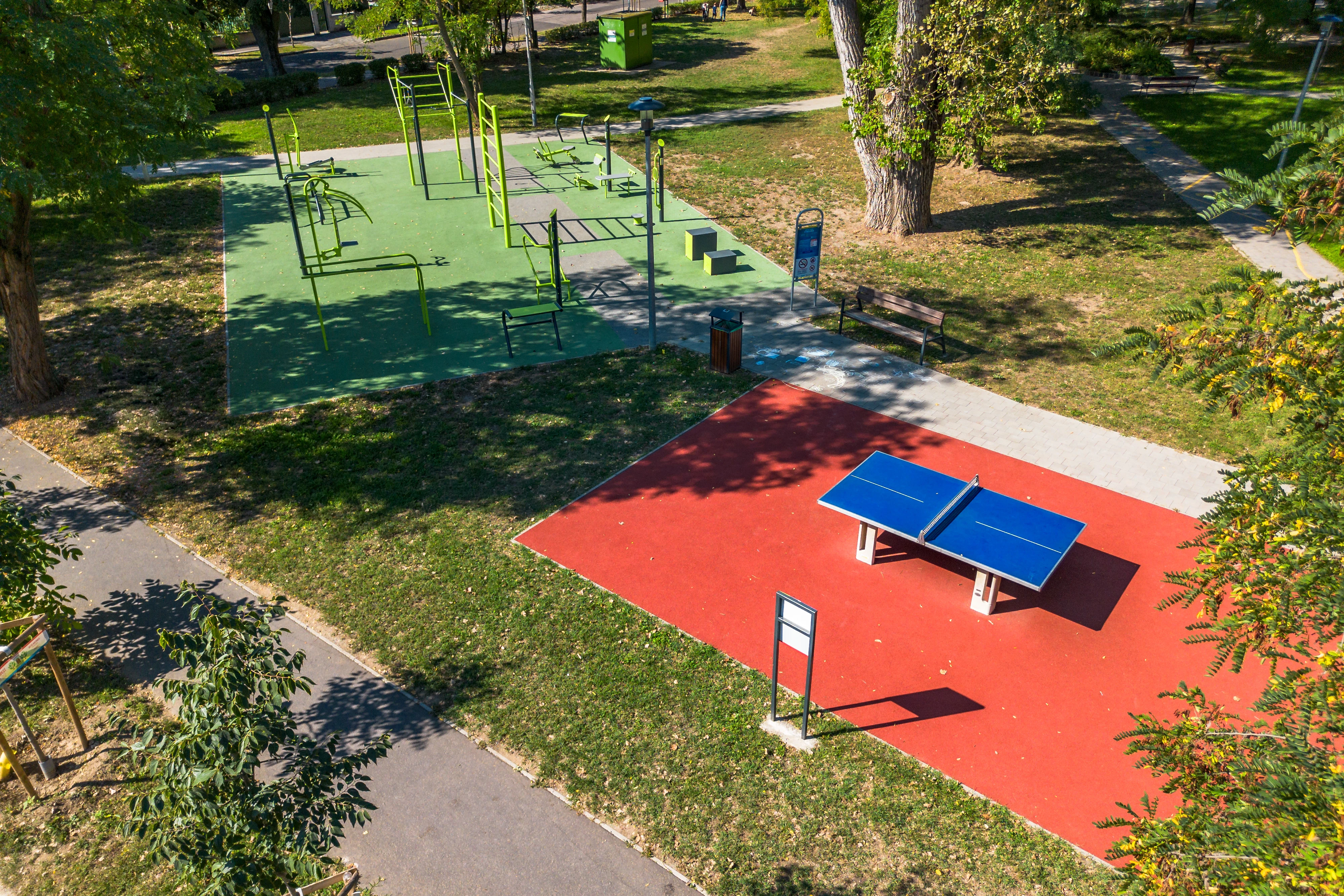 A parkot nem választja el kerítés a közparktól – így a tér természetes része a városi szövetnek, és minden korosztály számára vonzó mozgási lehetőséget nyújt.