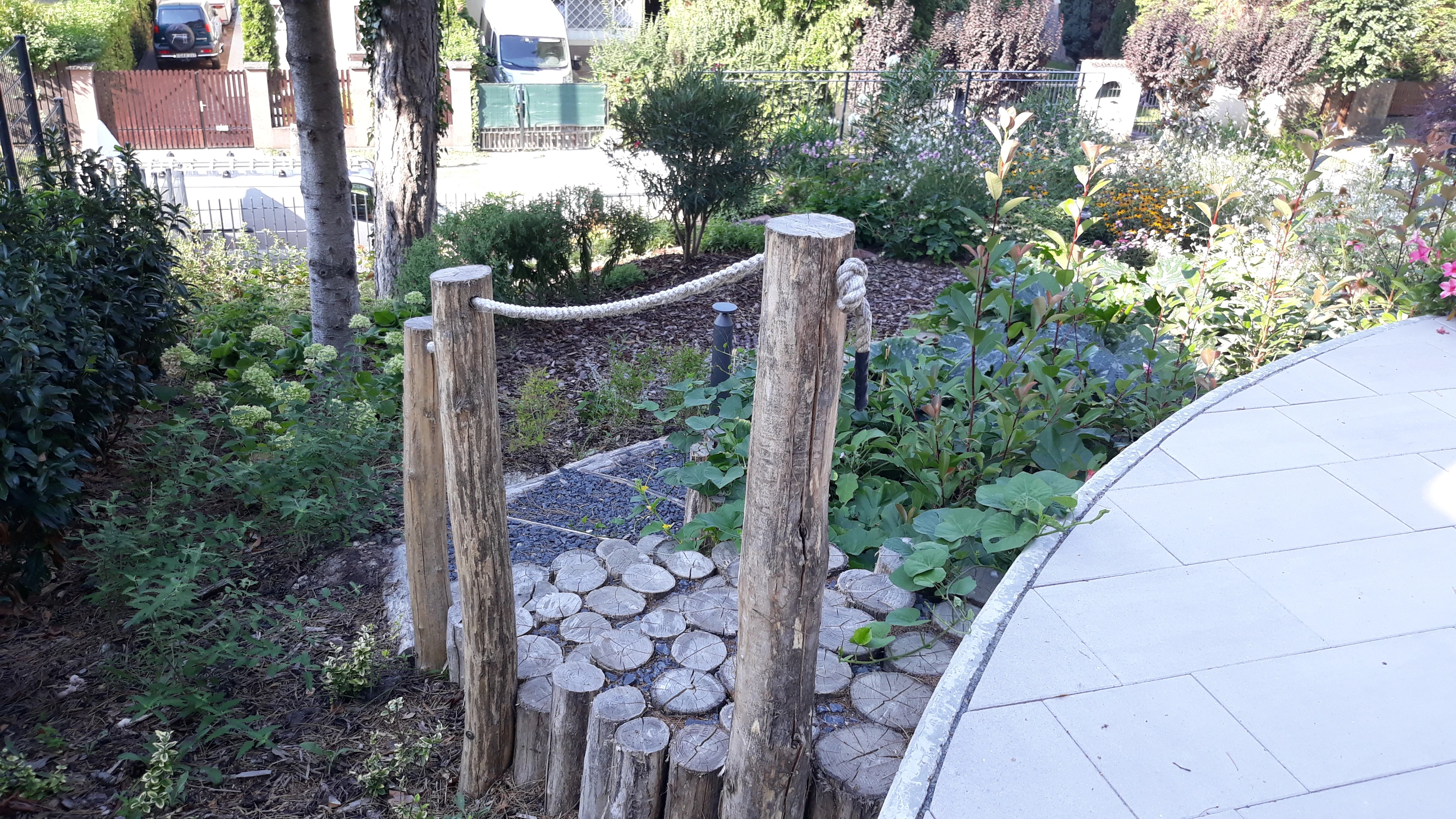 Egy igazán látványos, funkcionálisan is jól működő kert született, amely a lejtős terepadottságokból is előnyt kovácsol. Köszönjük a bizalmat!